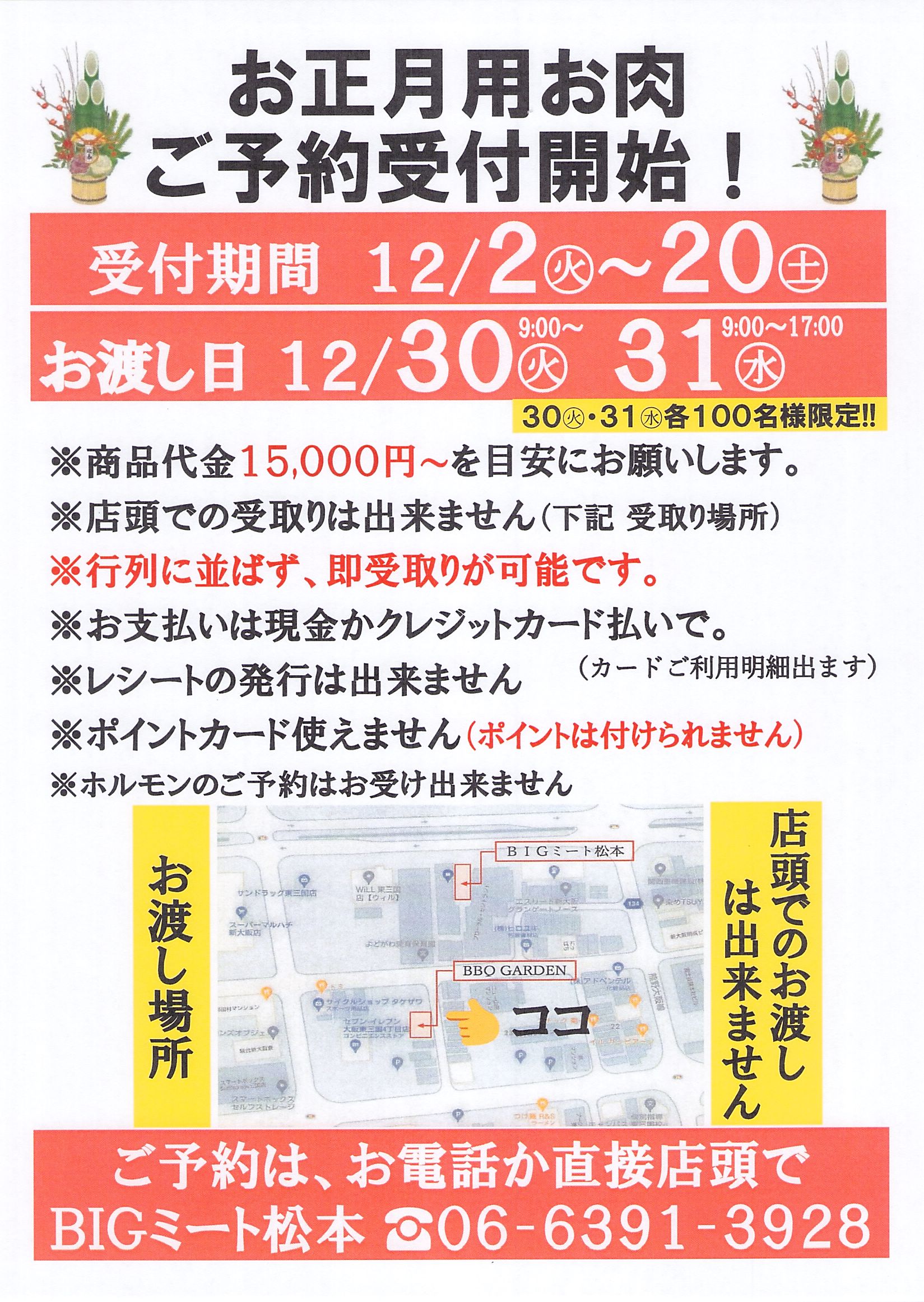 年末の寒い中、行列にお並びせず即お渡しが出来ることを目的としております。